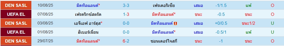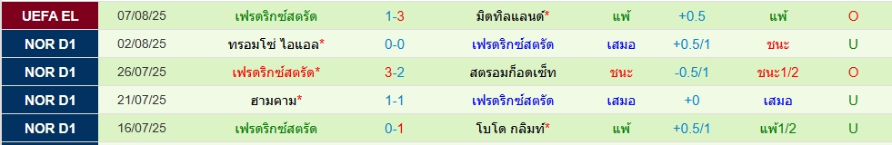 มิดทิลแลนด์(5นัด 12ประตู)เฟรดริคสตัด(5นัด 5ประตู)ยูโรป้า ลีก รอบคัดเลือก (นัดสอง) รอบคัดเลือกภาพรวมเกมนี้เป็นคาดว่าทีมเยือนเป็นฝ่ายเปิดเกมบุกใส่ เพราะเกมแรกโดนมาหนัก โดย 5 นัดหลังสุด สูงไป 2 เกม ทางด้านเจ้าบ้านมิดทิลแลนด์ น่าจะมาเล่นให้รัดกุม โดย 5 นัดหลัง สูงไป 3 เกม ราคาเปิดมาสามลูก ราคาโอเค น่าจะไปโอเวอร์