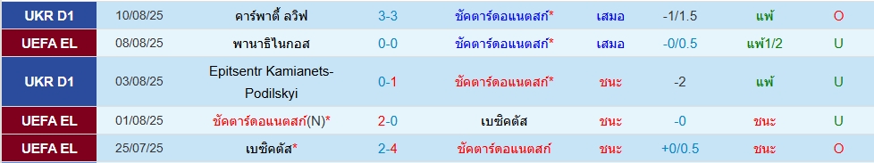 ชัคห์ตาร์ โดเน็ตส์ก(5นัด 10ประตู)พานาธิไนกอส(5 นัด 5ประตู)ยูโรป้า ลีก รอบคัดเลือก (นัดสอง) ภาพรวมเกมนี้เจ้าบ้านเปิดเกมก่อนแน่นอน เพราะได้เล่นในบ้านและฟอร์มกำลังลงตัวเลย โดย 5 นัดหลังสุด สูงไป 2 เกม ทางด้านทีมเยือนพานาธิไนกอส น่าจะมาเล่นแพ็คให้แน่นและรอสวน โดย 5 นัดหลังสุด สูงไป 2 เกม ราคาเปิดมาสองลูกครึ่ง ราคามาสวยเลย กดโอเวอร์ไปเลย