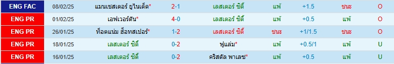 08/02/25 ชนะ เลย์ตัน โอเรี้ยนต์ 2-1 (เยือน) เอฟเอ คัพ / ต่อ 2+2.5 เสีย (ต่ำ)