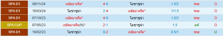 โอซาซูน่า(5นัด 5ประตู)เรอัล มาดริด(5นัด 10ประตู)ลาลีกา สเปน ภาพรวมเกมนี้เป็นคาดว่าทีมเยือนเป็นฝ่ายเปิดเกมบุกใส่ เพราะกำลังมั่นใจ โดย 5 นัดหลังสุด ต่ำไป 2 เกม ทางด้านเจ้าบ้านโอซาซูน่า ก็เป็นบอลรับรอสวน โดย 5 นัดหลัง ต่ำไป 4 เกม ราคาเปิดมาสามลูก เกมรับเจ้าบ้านเหนียวอยู่ กดต่ำสวยกว่า