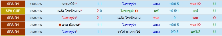 สถิติ 5 นัดหลังสุดของทั้ง 2 ทีม