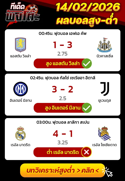 ทีเด็ดสกอร์สูงต่ำ 15/02/26
