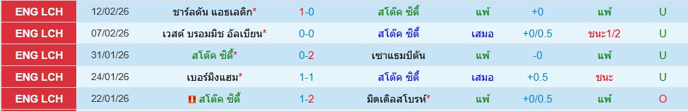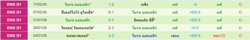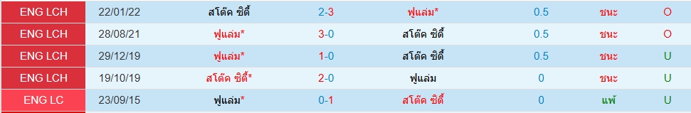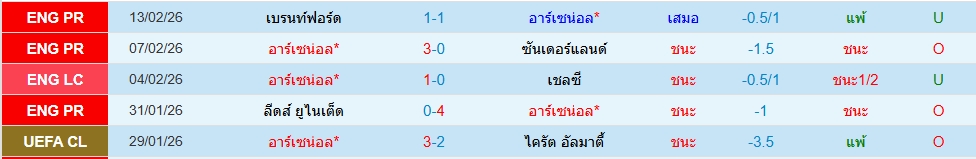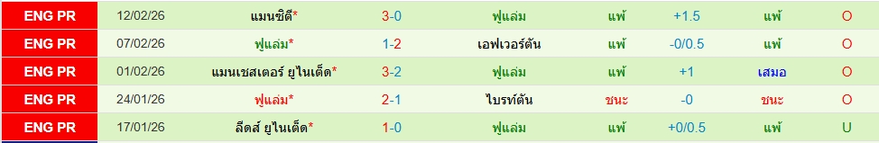 สถิติ 5 นัดหลังสุดของทั้ง 2 ทีม