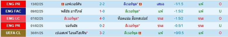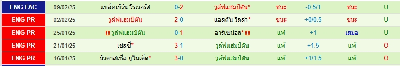 สถิติ 5 นัดหลังสุดของทั้ง 2 ทีม