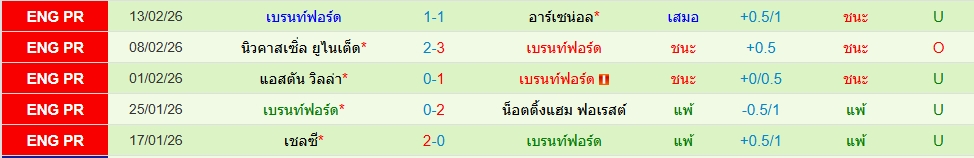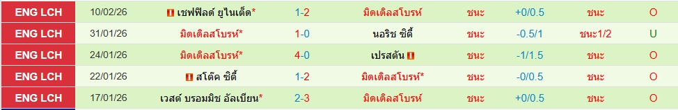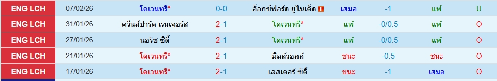 สถิติ 5 นัดหลังสุดของทั้ง 2 ทีม