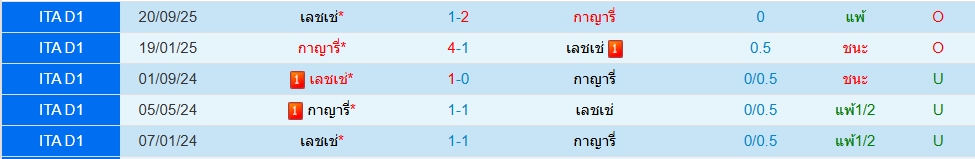 กายารี่(5นัด 7ประตู)เลชเช่(5นัด 2ประตู)กัลโช่ เซเรียอา อิตาลี ภาพรวมเกมนี้เป็นคาดว่าเจ้าบ้านเป็นฝ่ายเปิดเกมบุกใส่ เพราะได้เล่นนบ้าน โดย 5 นัดหลังสุด ต่ำไป 2 เกม ทางด้านทีมเยือนเลชเช่ น่าจะมาแพ็คตรงกลางและรอสวน โดย 5 นัดหลัง ต่ำไป 4 เกม ราคาเปิดมาสองลูก เกมน่าจอึดอัด กดต่ำดีกว่า