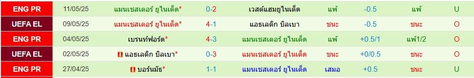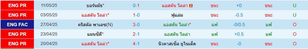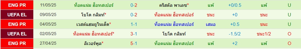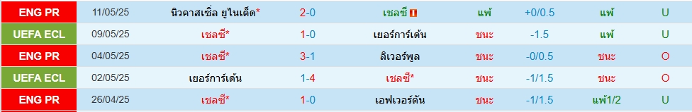 สถิติ 5 นัดหลังสุดของทั้ง 2 ทีม
