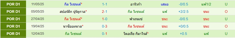 ริโอ อาฟ(5นัด 7ประตู)กิล วิเซนเต้(5 นัด 6ประตู)โปรตุเกส ซุปเปอร์ลีก ภาพรวมเกมนี้เจ้าบ้านเปิดเกมก่อนแน่นอน เพราะได้เล่นในบ้าน โดย 5 นัดหลังสุด สูงไป 3 เกม ทางด้านทีมเยือนกิล วิเซนเต้ จะมารับรอสวนแน่นอน โดย 5 นัดหลังสุด สูงไป 2 เกม ราคาเปิดมาสองลูกครึ่ง ราคาสวย กดสูงได้อีก