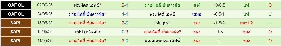 สถิติ 5 นัดหลังสุดของทั้ง 2 ทีม