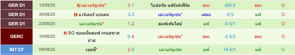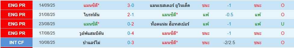 สถิติ 5 นัดหลังสุดของทั้ง 2 ทีม