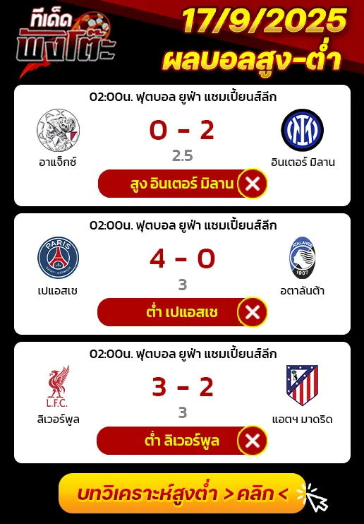 ทีเด็ดสกอร์สูงต่ำ 18/09/25