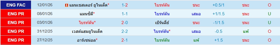 สถิติ 5 นัดหลังสุดของทั้ง 2 ทีม