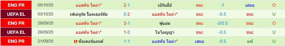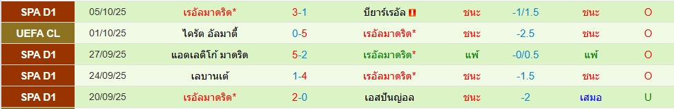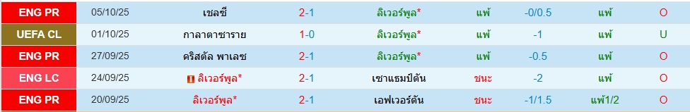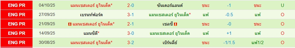 สถิติ 5 นัดหลังสุดของทั้ง 2 ทีม