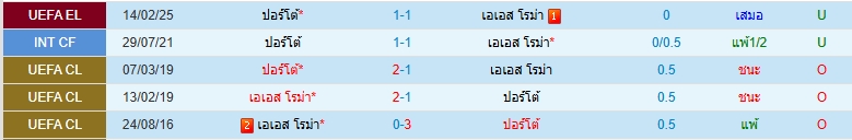 เอเอส โรม่า(5นัด 5ประตู)ปอร์โต้(5 นัด 6ประตู)ยูฟ่า ยูโรป้า ลีก (Playoff เรกสอง) ภาพรวมเกมนี้เจ้าบ้านบุกใส่แน่นอน เพราะได้เล่นในบ้านแถมเรกแรกเสมอ ต้องเอาแน่ โดย 5 นัดหลังสุด สูงไป 1 เกม ทางด้านทีมเยือนปอร์โต้ น่าจะแพ็คกลางให้แน่นและรอสวน โดย 5 นัดหลังสุด สูงไป 1 เกม ราคาเปิดมาสองลูกครึ่ง ราคาสวยเลย ใส่สูงรอเลยครับ