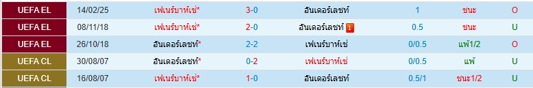 อันเดอร์เลชท์ vs เฟเนร์บาห์เช่