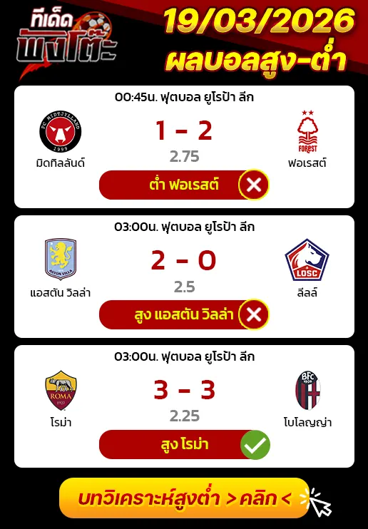 ทีเด็ดสกอร์สูงต่ำ 20/03/26