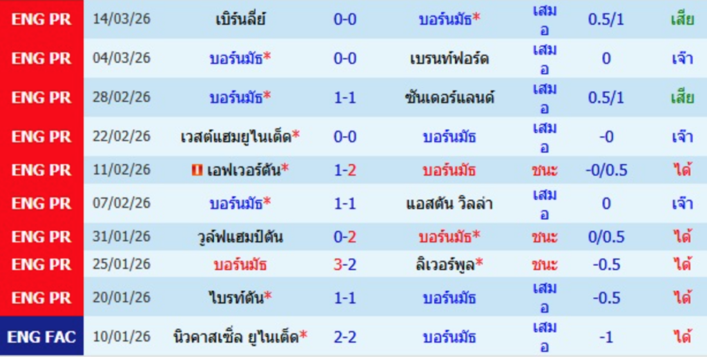 สถิติ 5 นัดหลังสุดของทั้ง 2 ทีม