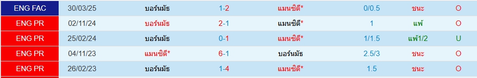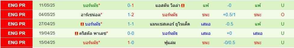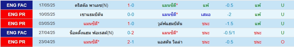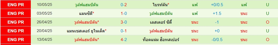 สถิติ 5 นัดหลังสุดของทั้ง 2 ทีม