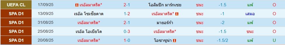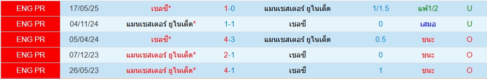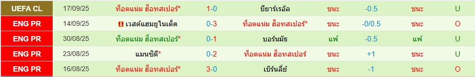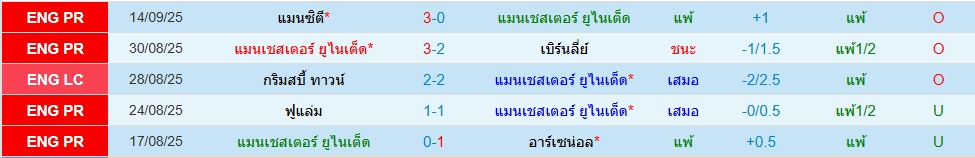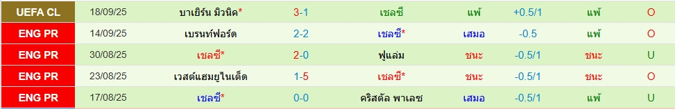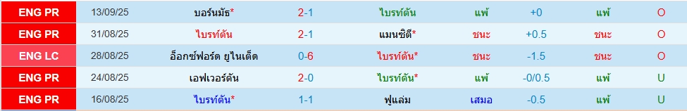 สถิติ 5 นัดหลังสุดของทั้ง 2 ทีม