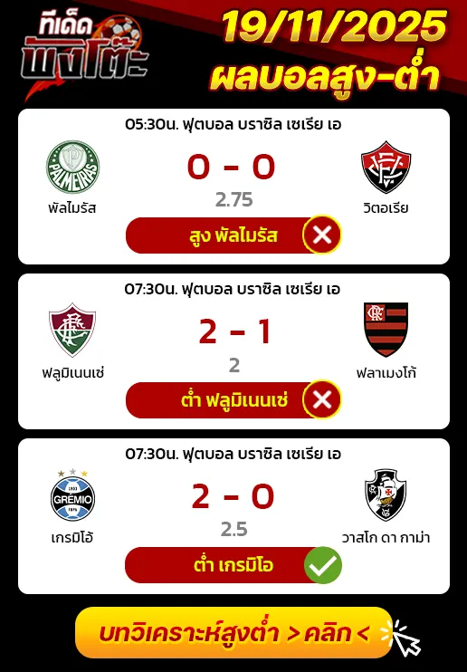 ทีเด็ดสกอร์สูงต่ำ 20/11/25