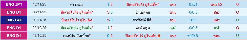 สถิติ 5 นัดหลังสุดของทั้ง 2 ทีม