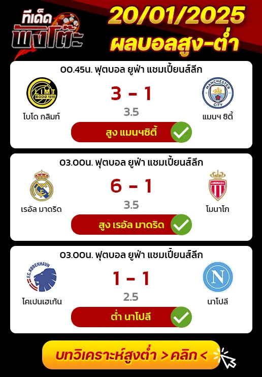 ทีเด็ดสกอร์สูงต่ำ 21/01/26