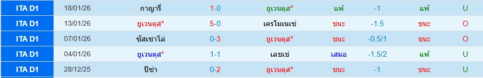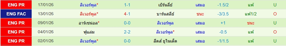 สถิติ 5 นัดหลังสุดของทั้ง 2 ทีม