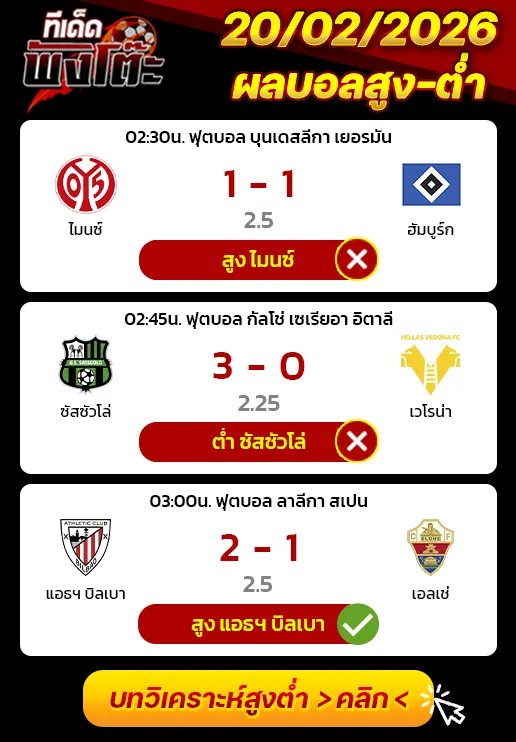 ทีเด็ดสกอร์สูงต่ำ 21/02/26