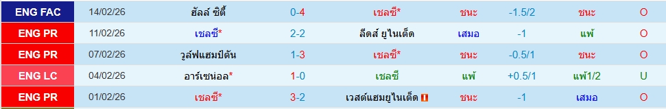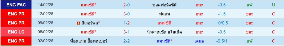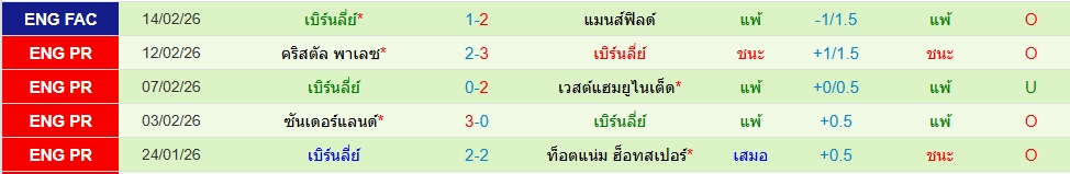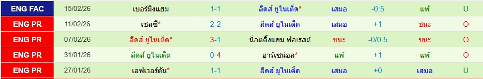 สถิติ 5 นัดหลังสุดของทั้ง 2 ทีม