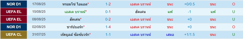บรานน์(5นัด 9ประตู)เออีเค ลาร์นาก้า(5 นัด 8ประตู)ยูโรป้า ลีก รอบเพลย์ออฟ (นัดแรก) ภาพรวมเกมนี้คาดว่าเจ้าบ้านเป็นฝ่ายเปิดเกมก่อนแน่ เพราะฟอร์มกำลังดีเลยในตอนนี้ โดย 5 นัดหลังสุด ต่ำไป 3 เกม ทางด้านทีมเยือนเออีเค ลาร์นาก้า น่าจะมาเล่นไปตามจังหวะของเกม โดย 5 นัดหลังสุด ต่ำไป 2 เกม ราคาสองลูกครึ่ง ราคาแพงไป น่าไปทางต่ำ