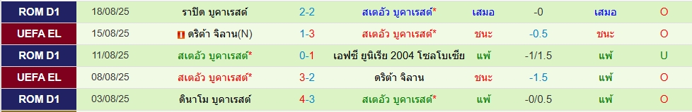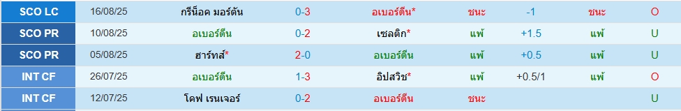 อเบอร์ดีน(5นัด 6ประตู)สเตอัว บูคาเรสต์(5 นัด 11ประตู)ยูโรป้า ลีก รอบเพลย์ออฟ (นัดแรก) ภาพรวมเกมนี้เจ้าบ้านเปิดเกมก่อนแน่นอน เพราะต้องเรียกความมั่นใจสักหน่อย โดย 5 นัดหลังสุด สูงไป 2 เกม ทางด้านทีมเยือนสเตอัว บูคาเรสต์ น่าจะมาเล่นให้รัดกุม โดย 5 นัดหลังสุด สูงไป 4 เกม ราคาเปิดมาสองลูกครึ่ง ราคามาสวย กดโอเวอร์ไปเลย
