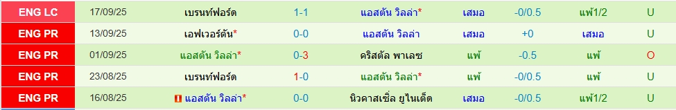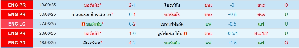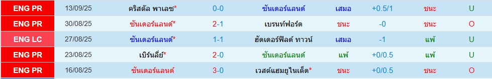 สถิติ 5 นัดหลังสุดของทั้ง 2 ทีม
