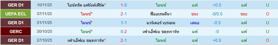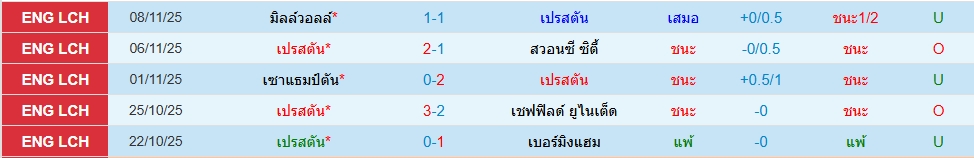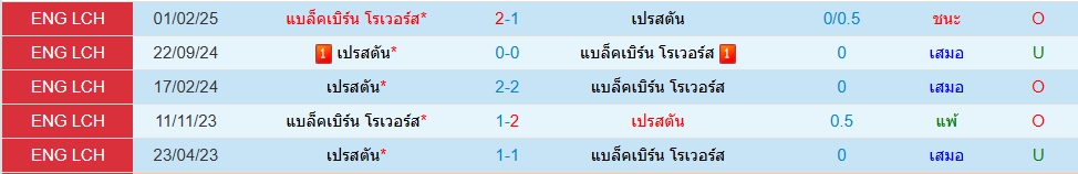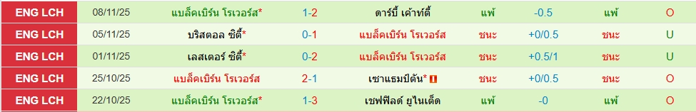 สถิติ 5 นัดหลังสุดของทั้ง 2 ทีม