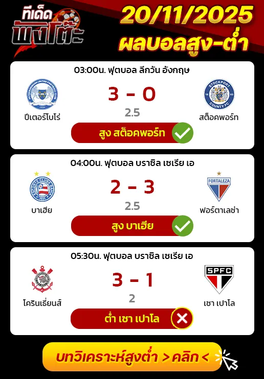 ทีเด็ดสกอร์สูงต่ำ 21/11/25