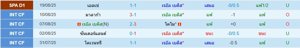 เรอัล เบติส(5นัด 6ประตู)อลาเบส(5 นัด 4ประตู)ลาลีกา สเปน ภาพรวมเกมนี้คาดว่าเจ้าบ้านเป็นฝ่ายเปิดเกมก่อนแน่ เพราะได้เล่นในบ้านและต้องเรีกยความมั่นใจสักหน่อย โดย 5 นัดหลังสุด ต่ำไป 3 เกม ทางด้านทีมเยือนอลาเบส น่าจะมาเล่นไปตามจังหวะของเกม โดย 5 นัดหลังสุด ต่ำไป 3 เกม ราคาสองลูกครึ่ง ราคาแพงไป น่าไปทางต่ำ