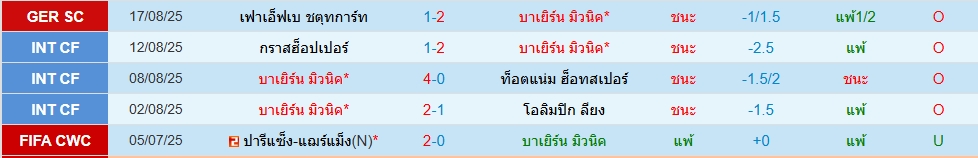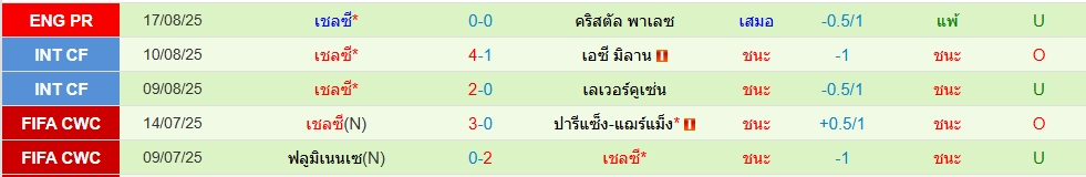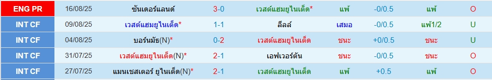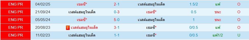 สถิติ 5 นัดหลังสุดของทั้ง 2 ทีม