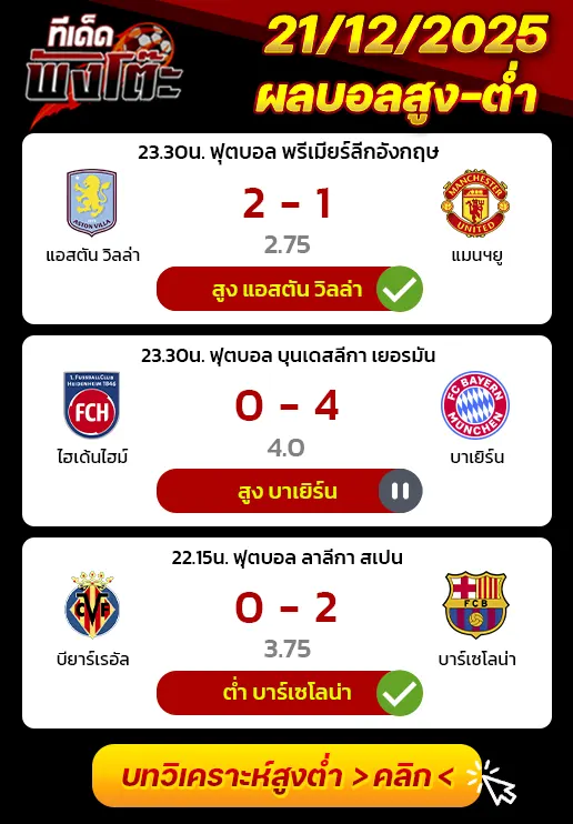 ทีเด็ดสกอร์สูงต่ำ 22/12/25