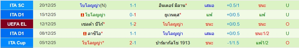 นาโปลี(5นัด 5ประตู)โบโลญญ่า(5นัด 6ประตู)ซูเปอร์ คัพ อิตาลี ภาพรวมเกมนี้เป็นคาดว่านาโปลีเป็นฝ่ายเปิดเกมบุกใส่ เพราะคุรภาพผู้เล่นที่ดีกว่า โดย 5 นัดหลังสุด ต่ำไป 4 เกม ทางด้านโบโลญญ่า น่าจะมาเล่นให้รัดกุม โดย 5 นัดหลัง ต่ำไป 3 เกม ราคาเปิดมาสองลูกครึ่ง บอลคู่ชิง น่าจะทรงอึดอัด กดต่ำดีกว่า