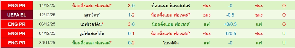 สถิติ 5 นัดหลังสุดของทั้ง 2 ทีม