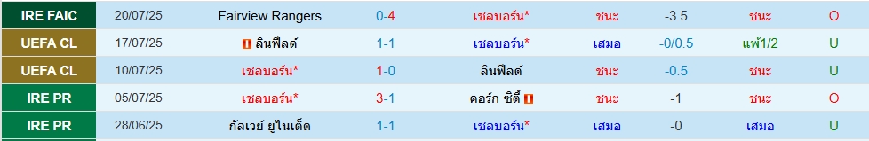 เชลบอร์น(5นัด 10ประตู)คาราบัก(5นัด 13ประตู)ยูฟ่า แชมเปี้ยนส์ลีก (รอบคัดเลือก) นัดแรก ภาพรวมเกมนี้เป็นคาดว่าทีมเยือนเป็นฝ่ายเปิดเกมบุกใส่ เพราะชื่อชั้นและต้องเรียกความมั่นใจสักหน่อย โดย 5 นัดหลังสุด สูงไป 5 เกม ทางด้านเจ้าบ้านเชลบอร์น น่าจะมาเล่นให้รัดกุมมากๆ โดย 5 นัดหลัง ต่ำไป 3 เกม ราคาเปิดมาสองลูกครึ่ง ราคาสูงไป น่าจะใส่อันเดอร์