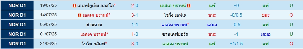 สถิติ 5 นัดหลังสุดของทั้ง 2 ทีม