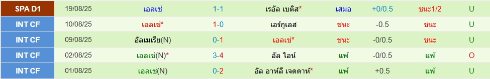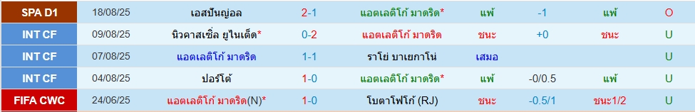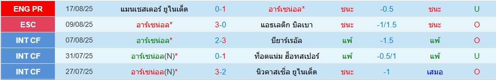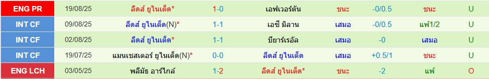 สถิติ 5 นัดหลังสุดของทั้ง 2 ทีม