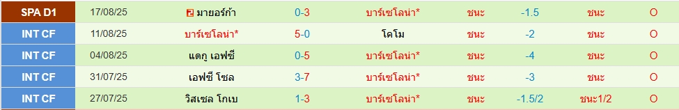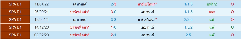 เลบานเต้(5นัด 5ประตู)บาร์เซโลน่า(5นัด 23ประตู)ลาลีกา สเปน ภาพรวมเกมนี้เป็นคาดว่าทีมเยือนเป็นฝ่ายเปิดเกมบุกใส่ เพราะตอนนี้ฟอร์มกำลังดีต่อเนื่อง โดย 5 นัดหลังสุด สูงไป 5 เกม ทางด้านเจ้าบ้านเลบานเต้ น่าจะมาตั้งรับเต็มระบบ เพราะเป็นรองอยู่เยอะ โดย 5 นัดหลัง ต่ำไป 4 เกม ราคาเปิดมาสามลูกครึ่ง ราคาก็ดูสูงไป คู่นี้น่าจะไปทางต่ำ