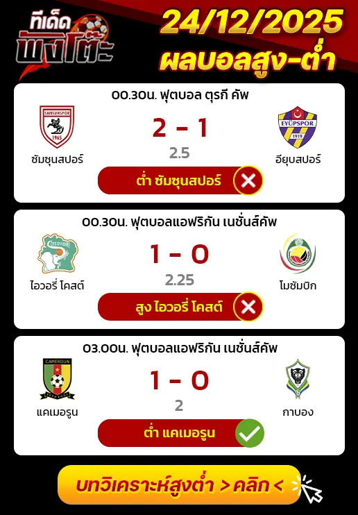 ทีเด็ดสกอร์สูงต่ำ 25/12/25