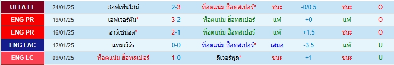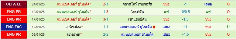 สถิติ 5 นัดหลังสุดของทั้ง 2 ทีม