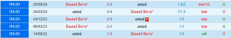 เลชเช่(5นัด 5ประตู)อินเตอร์ มิลาน(5นัด 9ประตู)กัลโช่ เซเรียอา อิตาลี ภาพรวมเกมนี้เป็นคาดว่าทีมเยือนเป็นฝ่ายเปิดเกมบุกใส่ เพราะกำลังฟอร์มดีขึ้นเรื่อยๆ โดย 5 นัดหลังสุด ต่ำไป 2 เกม ทางด้านเจ้าบ้านเลชเช่ ก็น่าจะรับรอสวน เพราะเป็นรองเยอะ โดย 5 นัดหลัง ต่ำไป 2 เกม ราคาเปิดมาสามลูก ราคาก็แพงไป ใส่อันเดอร์ไว้ก่อน