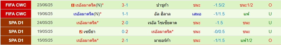 ซัลซ์บวร์ก(5นัด 10ประตู)เรอัล มาดริด(5 นัด 10ประตู)ฟีฟ่า คลับ เวิลด์ คัพ กลุ่ม เอช ภาพรวมเกมนี้คาดว่าเรอัล มาดริดเป็นฝ่ายเปิดเกมก่อนแน่ เพราะคุณภาพทีมเหนือกว่าและกำลังมั่นใจเลย โดย 5 นัดหลังสุด ต่ำไป 3 เกม ทางด้านซัลซ์บวร์ก น่าจะมาตั้งรับและรอสวน โดย 5 นัดหลังสุด ต่ำไป 1 เกม ราคามาสามลูกครึ่ง ราคาแพงไปนิด น่าจะไปต่ำสวยกว่า