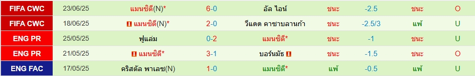 สถิติ 5 นัดหลังสุดของทั้ง 2 ทีม