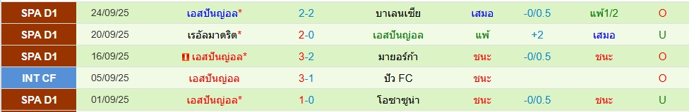 สถิติ 5 นัดหลังสุดของทั้ง 2 ทีม