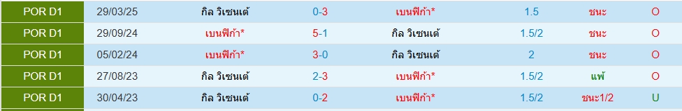 เบนฟิก้า(5นัด 9ประตู)กิล วิเซนเต้(5 นัด 5ประตู)โปรตุเกส ซุปเปอร์ลีก ภาพรวมเกมนี้เจ้าบ้านเปิดเกมก่อนแน่นอน เพราะได้เล่นในบ้านและต้องเรียกความมั่นใจ โดย 5 นัดหลังสุด สูงไป 3 เกม ทางด้านทีมเยือนกิล วิเซนเต้ น่าจะมาเล่นไปตามจังหวะของเกม โดย 5 นัดหลังสุด ต่ำไป 5 เกม ราคาเปิดมาสองลูกครึ่ง ราคาสวยเลย กดโอเวอร์ไปเลย